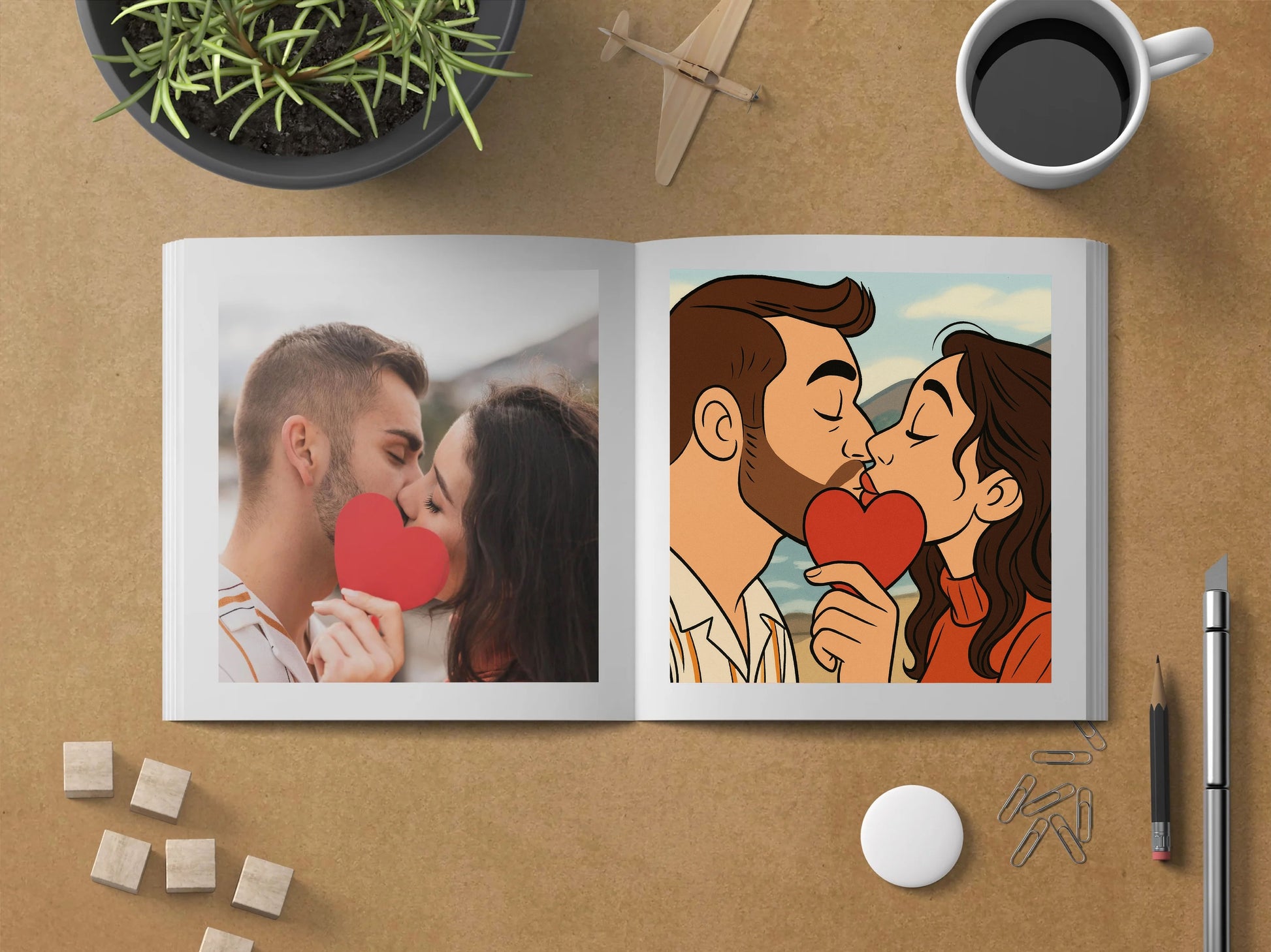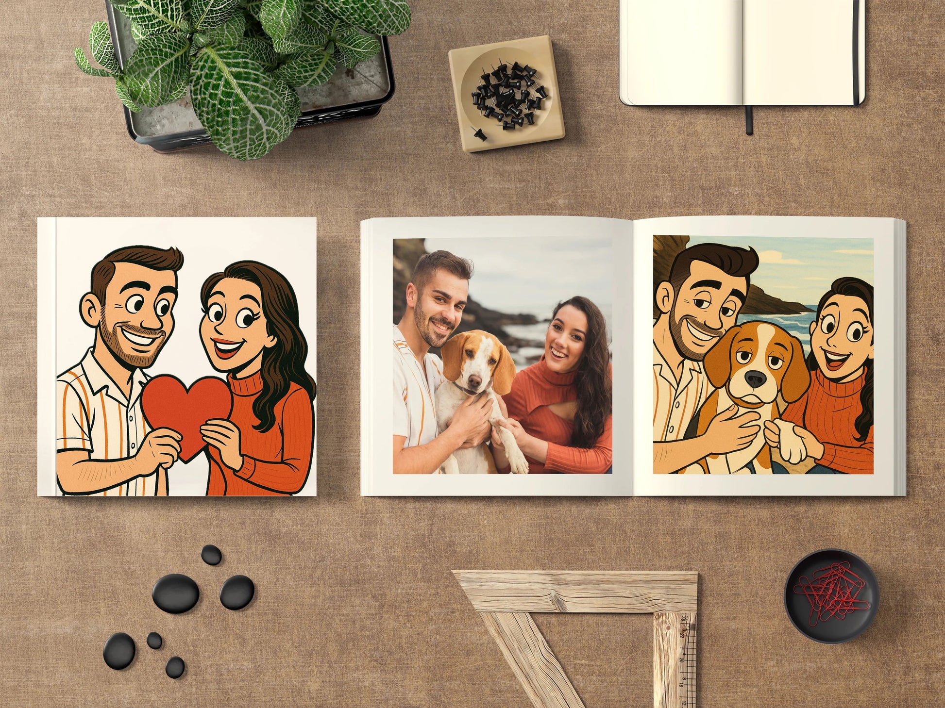 Sube tus imágenes preferidas y recibirás un álbum de 20 páginas estilo Caricatura Clásica.